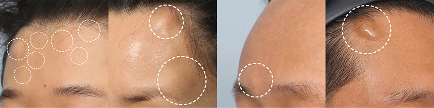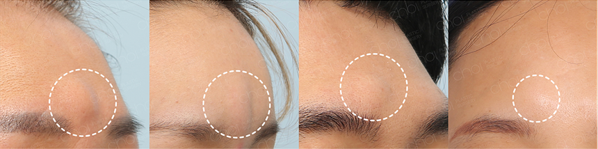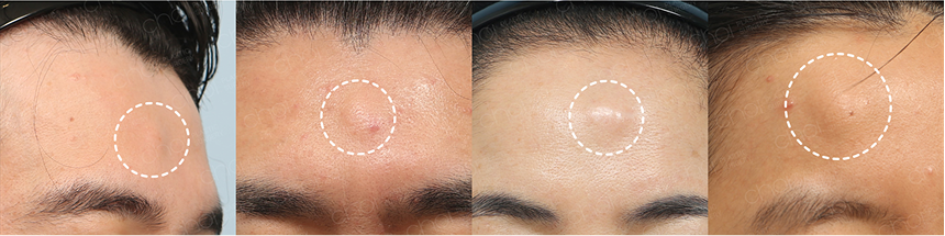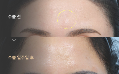 이마에 흉터 없이 간단하고 깔끔하게 제거가 가능합니다.