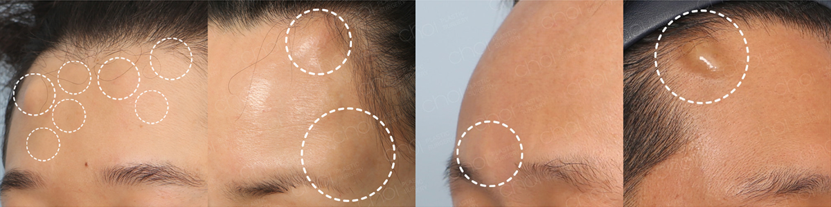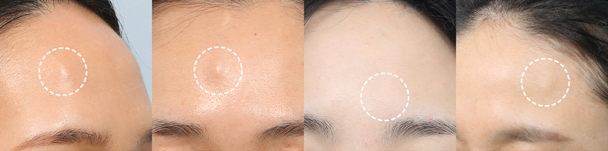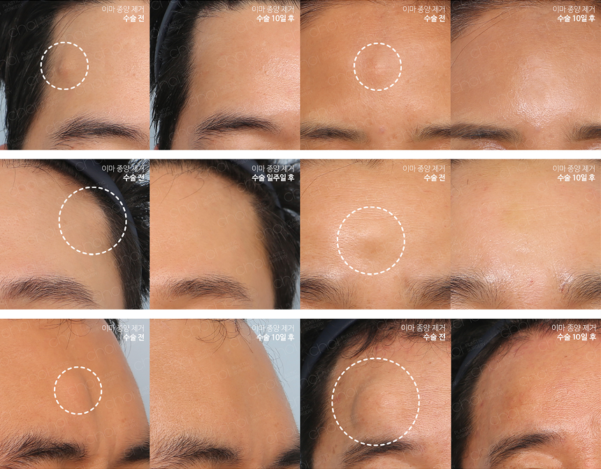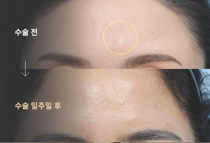 이마에 흉터 없이 간단하고 깔끔하게 제거가 가능합니다.